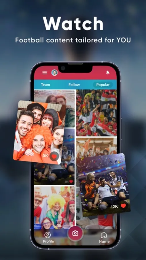 As a football fan, you can use our "Snap It" feature to express your passion for football. Share stories and snaps while enjoying football stories by other football fans.