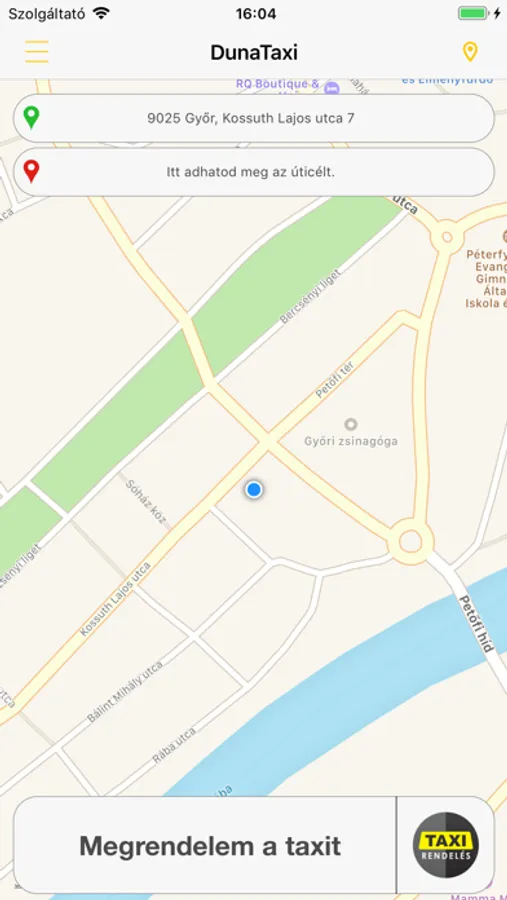 Duna Taxi Győr mobilrendelő alkalmazás! Jelöld ki térképen a felvételi pontot és kövesd folyamatosan ahogy a taxid érkezik érted! Nincs felesleges várakozás az út szélén, elég akkor kifáradnod, ha az autó már tényleg