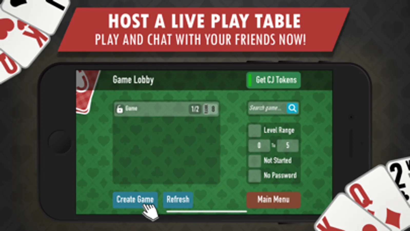 ◆ Live Play: play and chat with friends or sit at a random table and make new ones! You may also create your own table for a private game and decide what the house rules will be.