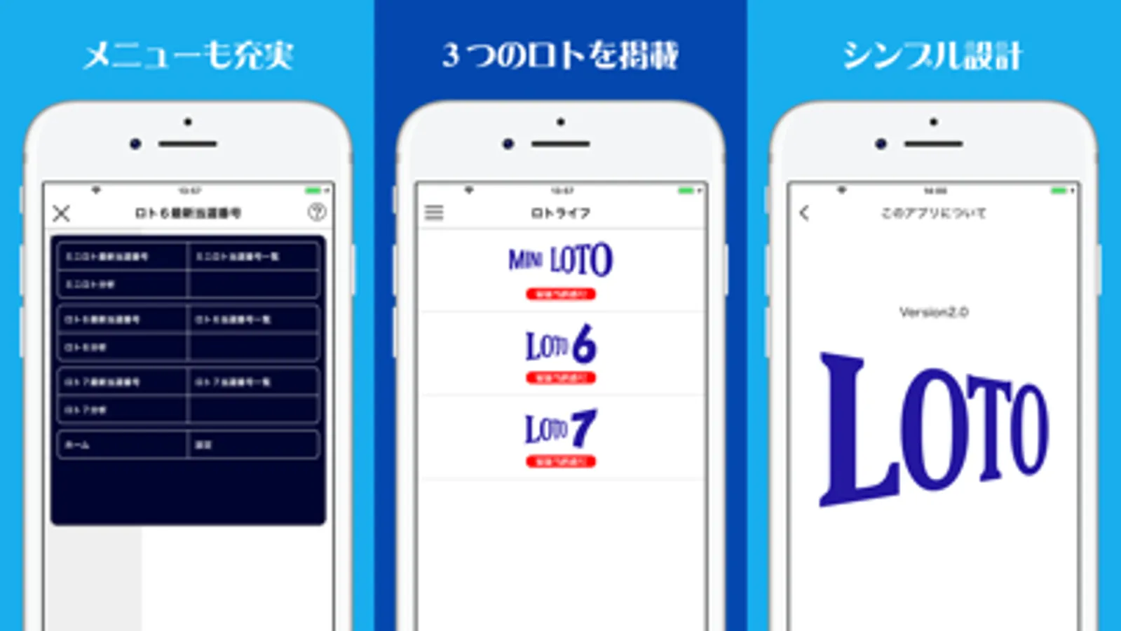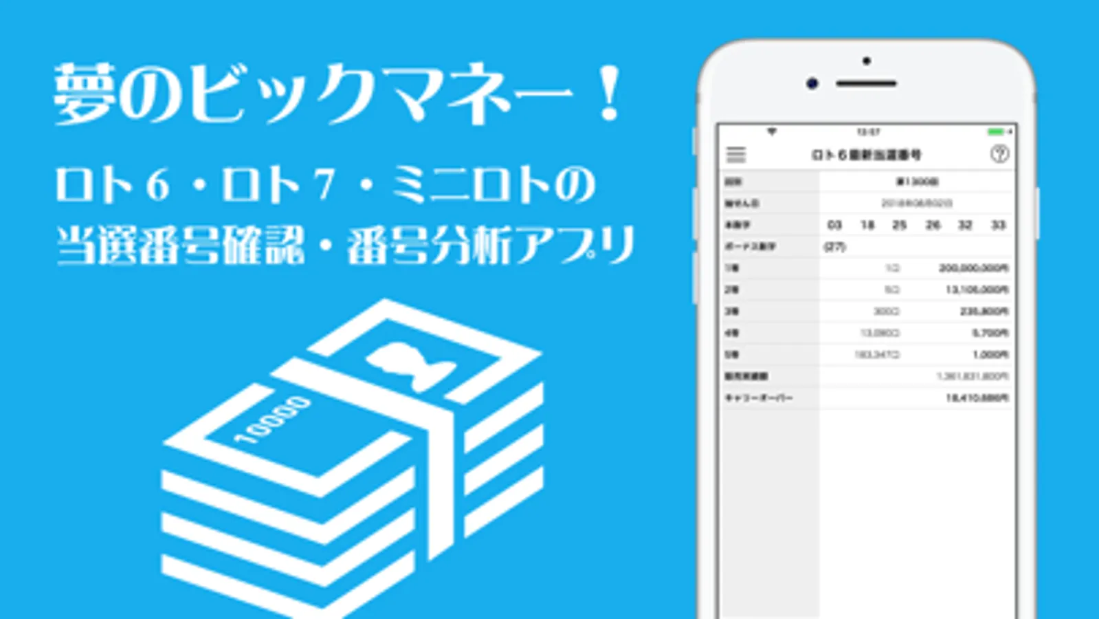 ロト6・ロト7・ミニロトの当選番号を抽せん日に速報通知するアプリです。