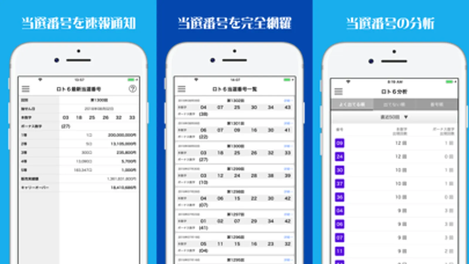 第1回〜最新回までの当選番号を完全網羅!キャリーオーバーなども確認できます。