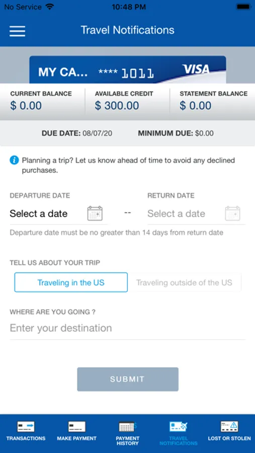 - Report a card lost or stolen.