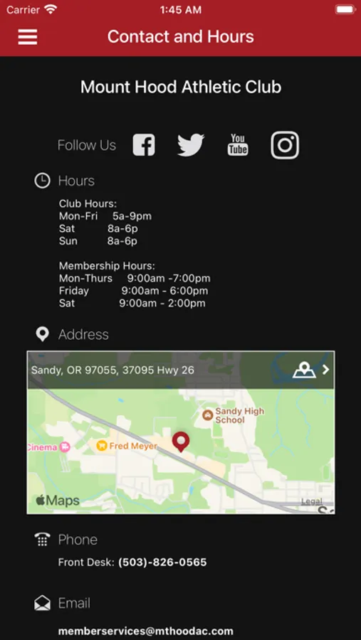 Sandy, Oregon's health club hub! Mt Hood Athletic Club's app will keep you up to date with notifications, special offers, ability to put group exercise classes into your phone schedule, check in via this app and more! We are a full service Health Club with fitness offerings, Racquetball, pools and more. With a comfortable and non intimidating environment, we welcome all folks to come improve their lives through fitness here.
