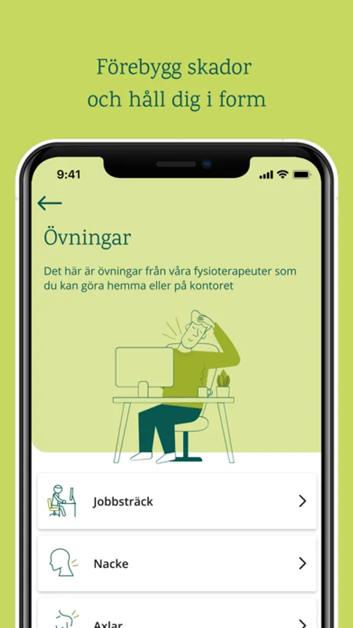 Övningar - kvalitetssäkrade övningar utvalda av våra fysioterapeuter. Pausgympa och övningar för specifika delar av kroppen.
