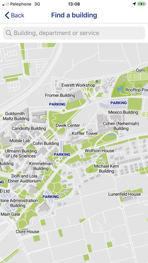 Search by building, department, administrative division or service and receive a list of results pulled directly from the Institute’s databases to ensure accuracy and navigate to the location you are looking using WAZE.