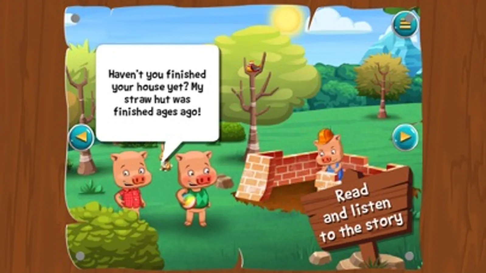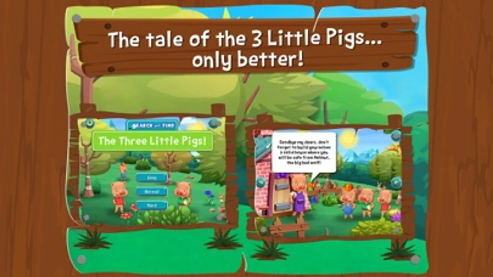 - Read and listen to the classic story of the three little pigs with fun dialogues and interactivity