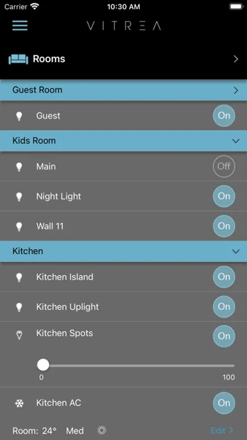 Near or far, home or away, Vitrea ControlPro application puts you in charge 24/7 on your VTouch Pro or VMax Lighting system.