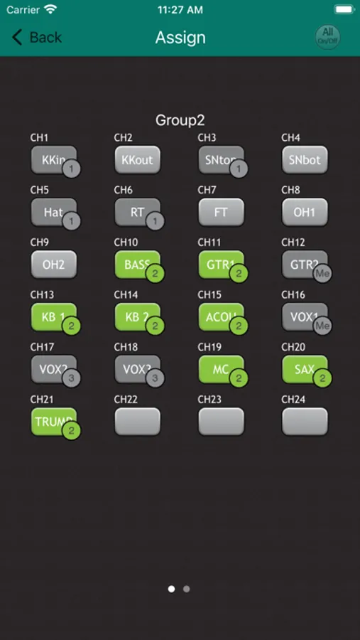 - Choose a monitor mix (Qu Mix 1-10, and Grp1-8 if in mix mode)