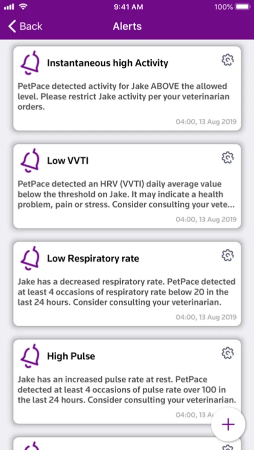 You can download health reports analyzing health trends, receive real-time alerts if abnormal parameters are detected and share the data with your veterinarian.