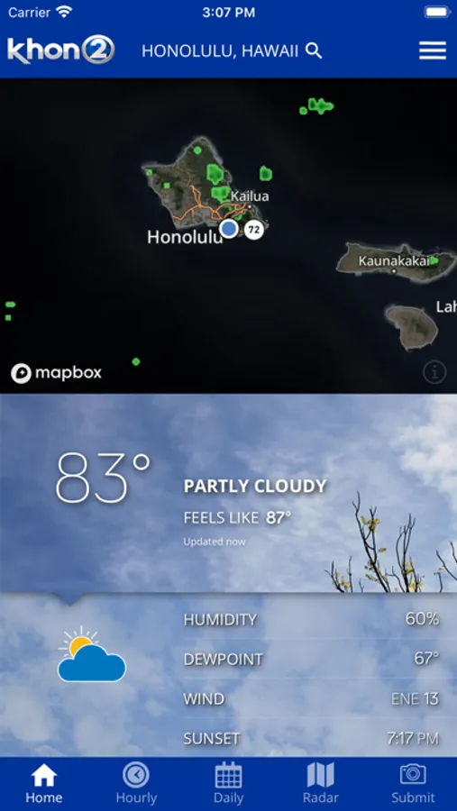 Never let the weather catch you by surprise again. The trusted weather experts at KHON2 Weather deliver Hawaii's most accurate hour-by-hour forecast for the next day and for the week ahead for Honolulu, Waipahu, Kaneohe, Kailua, and many other cities. Unlike other weather apps, you'll get a local forecast that is customized for you.