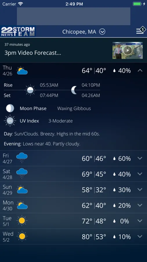 Never let the weather catch you by surprise again. The trusted weather experts of 22News StormTeam deliver Western Massachusetts's most accurate hour-by-hour forecast for the next day and for the week ahead. Unlike other weather apps, you'll get a local forecast that is customized for you.