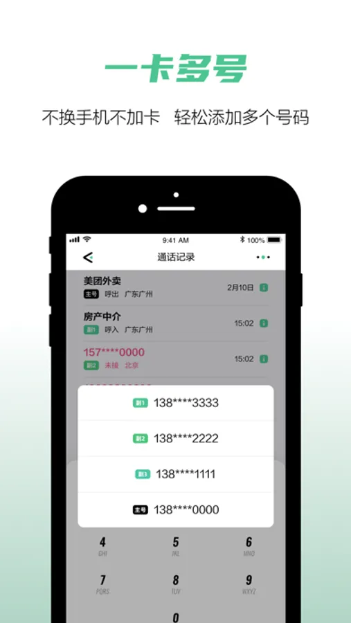 客户、同事联系用副号,生活用主号,专号专用,工作生活无缝切换。