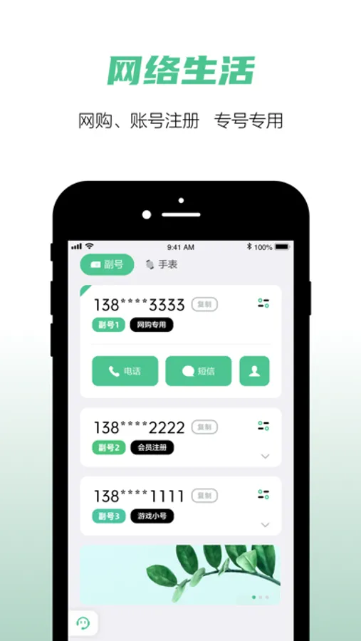 APP、网站等账号注册用副号,保障主号隐私安全。