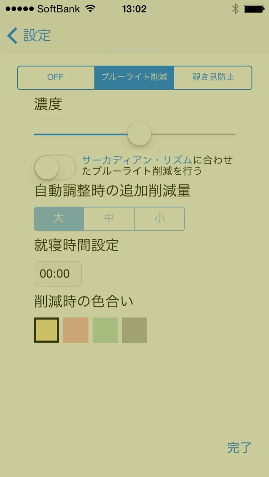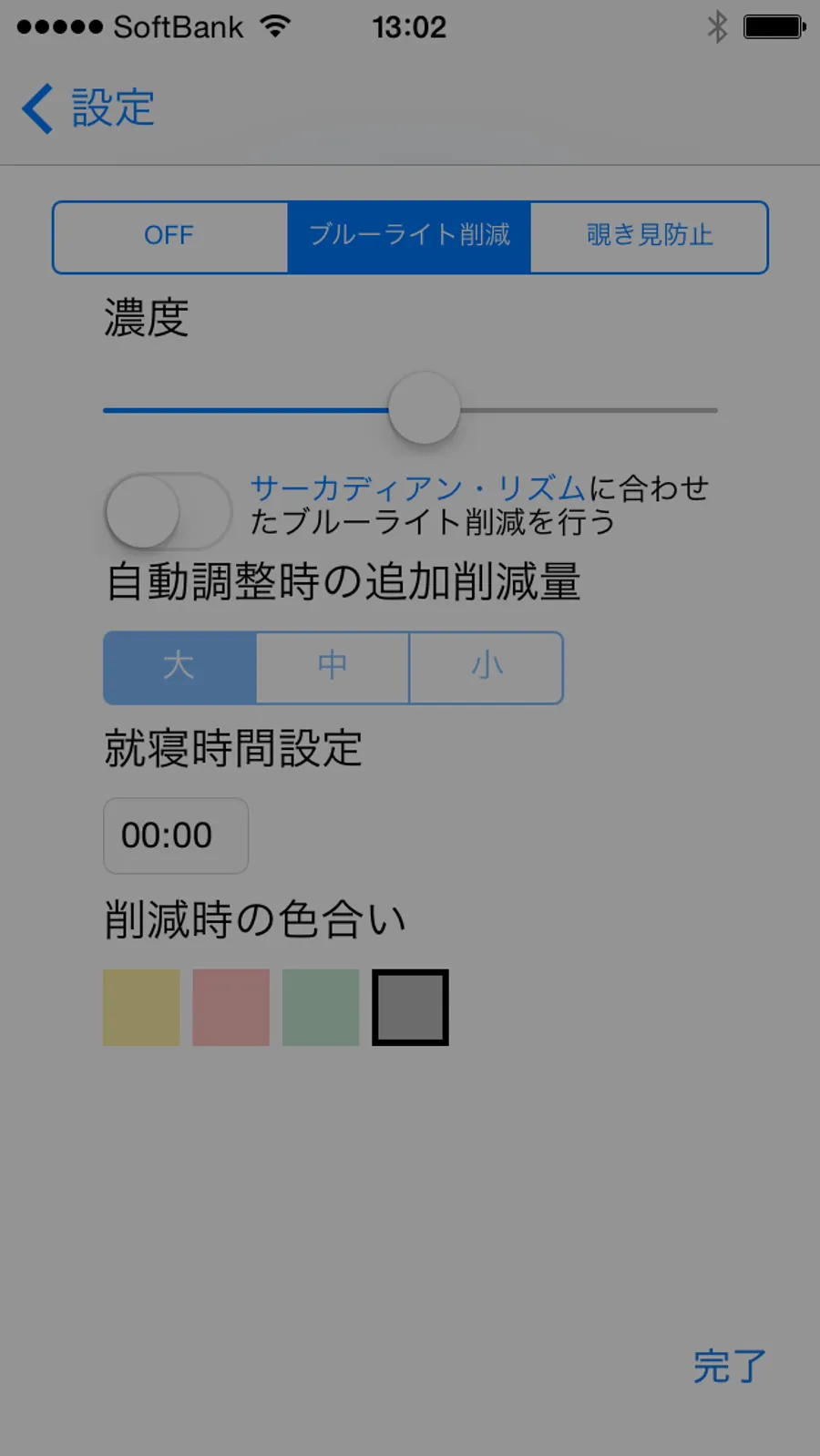 本製品は就寝時間の2時間前までに、ブルーライトの削減率を徐々に高めていきます。