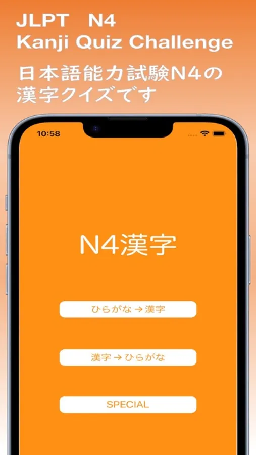これは日本語能力試験N4の漢字を練習するのためのアプリです。