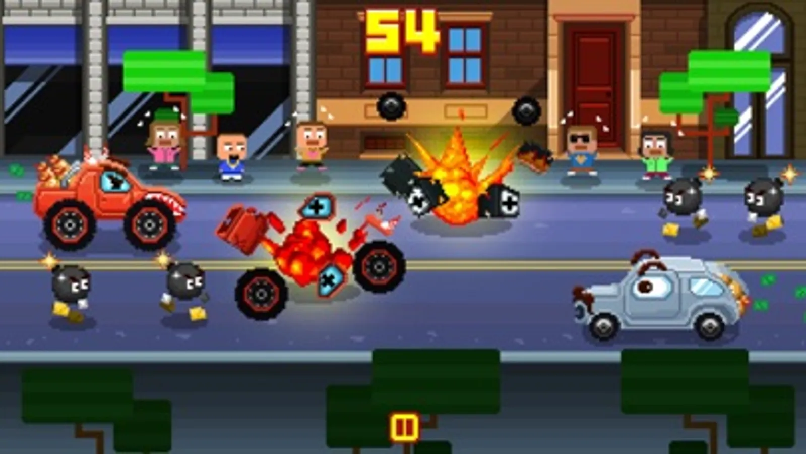CONTROL: Time & tap the screen to trigger the bomb while it's getting near the robber's vehicles.