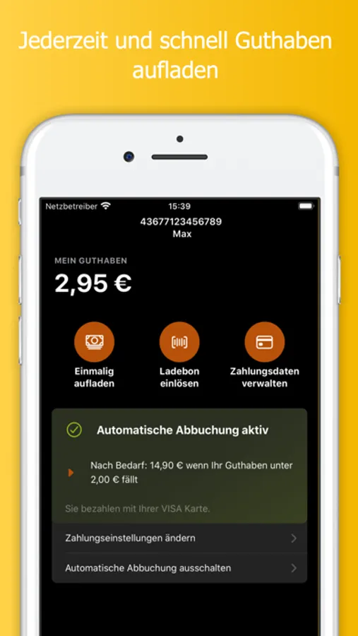 Auf dem "Aufladen" Reiter können Sie mit nur wenigen Klicks Ihr Guthaben aufladen. Via Aufladecode, Online mit Kredit oder Debitkarte, Bankkonto, Paypal oder EPS.