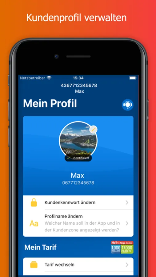 Auf dem "Profil" Reiter finden Sie alle Informationen zu Ihrem Kundenprofil bei HoT. Hier können Sie Ihre Daten aktualisieren, Kontoauszüge und Rechnungen einsehen, Ihren Tarif wechseln, ein persönliches Profilbild und Profilnamen wählen oder auch weitere Rufnummern registrieren.