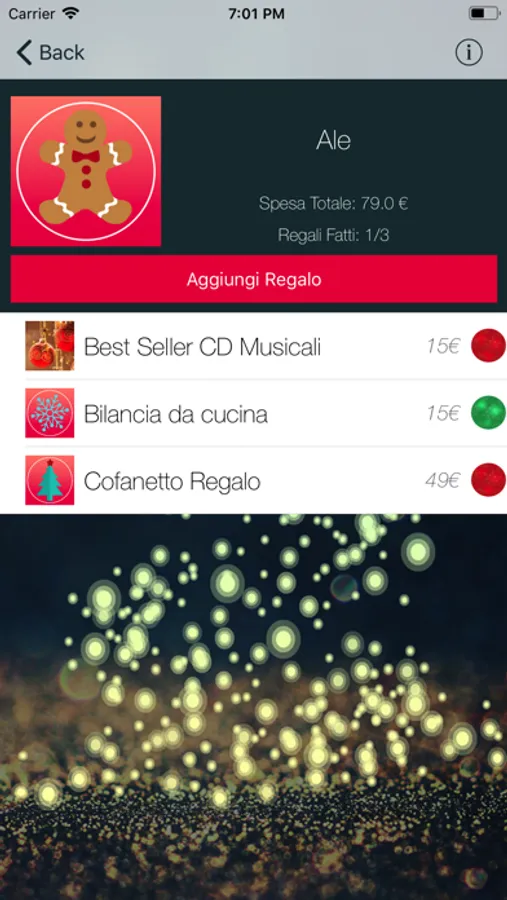 - Check per evidenziare se il regalo è stato fatto o è ancora da fare