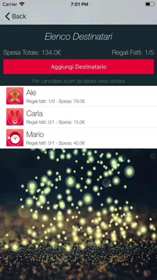 La versione gratuita di Natale - Lista Regali permette l’inserimento gratuito dei primi 3 Destinatari.