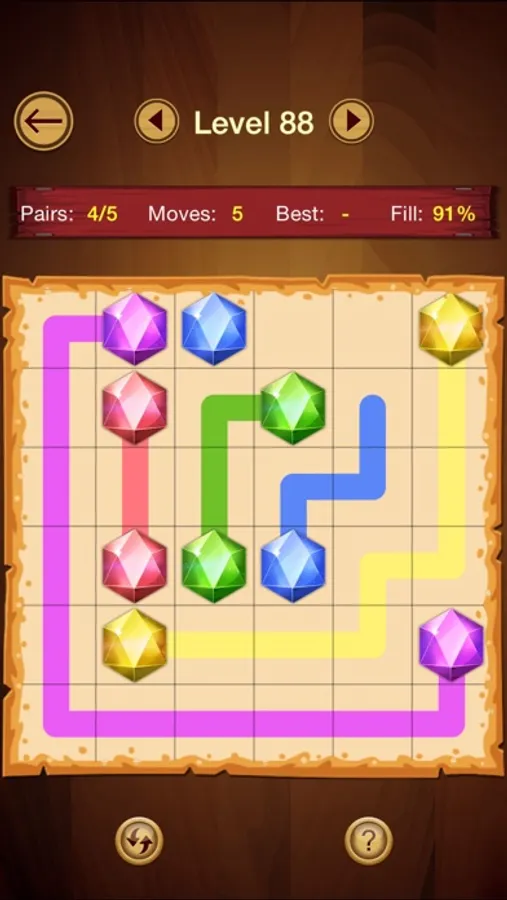 Choose a Number Link stage and start connecting pairs of numbers on the board. Be careful not to overlap the lines or you will interrupt the flow between them. The solution for each stage is achieved when all the pairs of numbers are correctly connected and all of the squares of the board have been filled.
