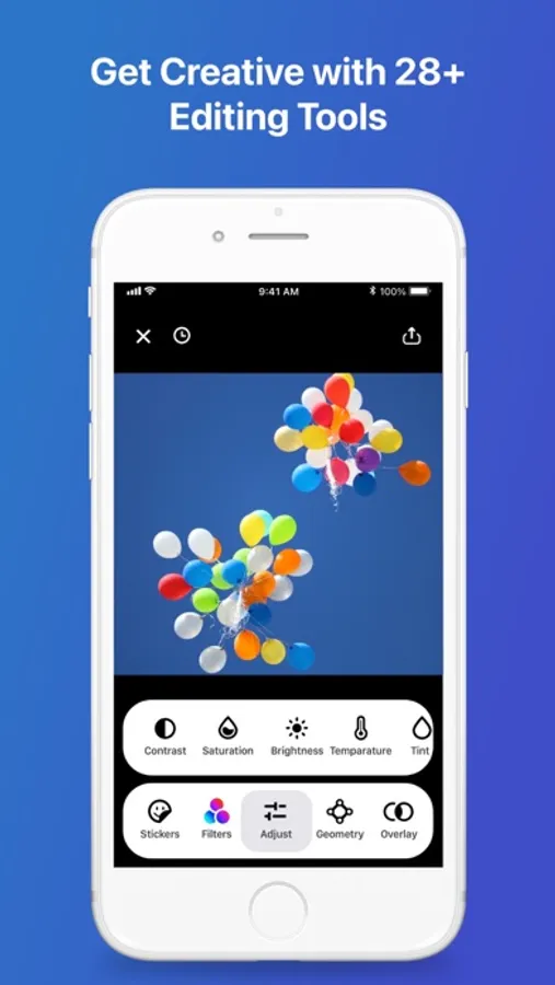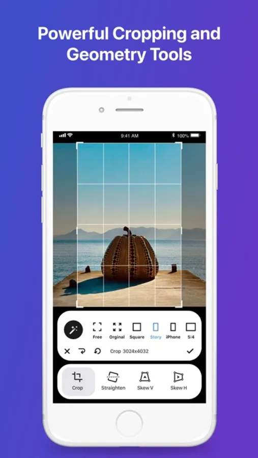Achieve the most amazing results with a simple swipe: edit pics, videos, Live Photos, animated GIFs and Portrait photos with tools that enable you to crop and flip images.