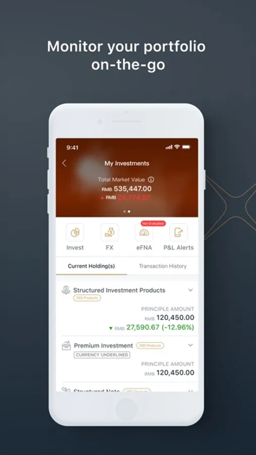 - Immediate access to your banking and investment activities at a glance with our new bottom navigation bar