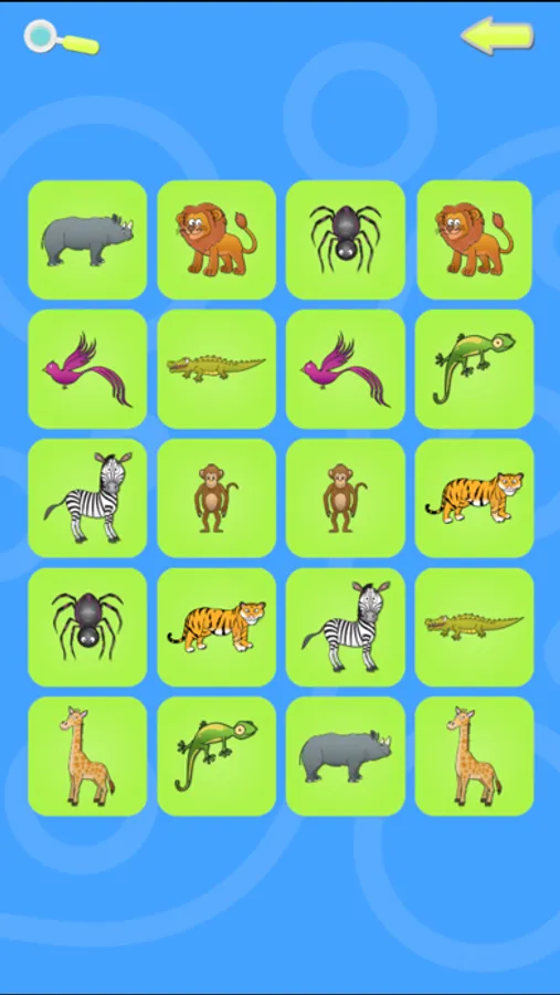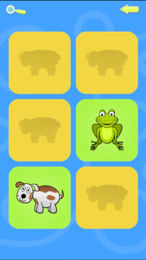 Memory Match is a simple and delightful game with cards for children aged 3-6. Initially, all cards are turned face down. Tap on a card to turn it over, and memorize it. Then tap on another card to find its match (i.e. the same picture). If you find the matching card, both cards disappear. Otherwise, both cards flip over and you get another try.