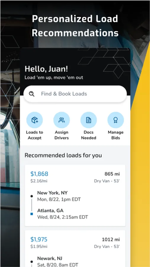 Dispatchers and Owner-Operators can book, bid, manage, and track the progress of truck loads with less hassle. Plus, our Smart Loadboard highlights loads just for you with our AI-driven recommendations.