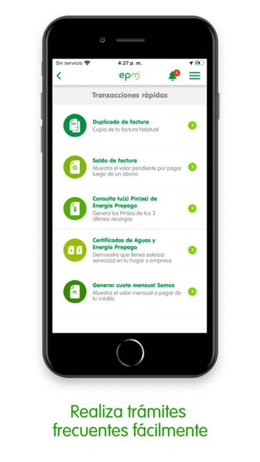 - Crear nuevas transacciones rápidas, para que tu App EPM sea tu aliada cuando más necesites una solución en tu mano.