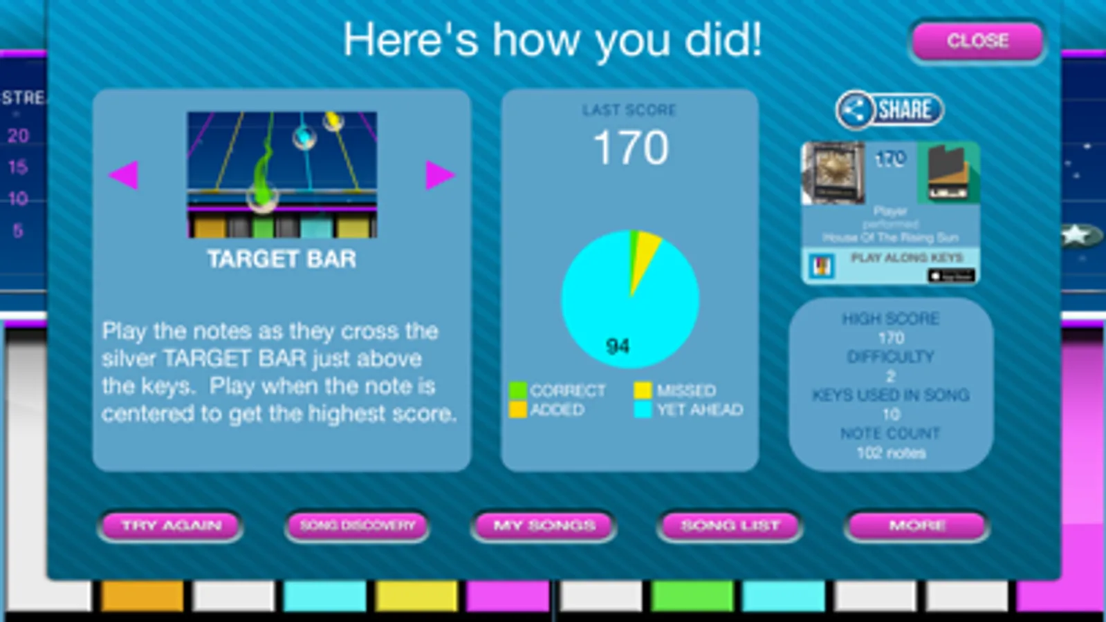 With most music games, you play on a simulated piano or guitar, but when you play the same way on a real piano or guitar, your playing is meaningless. Not so with Play Along Keys! Play Along Keys is both fun and authentic.