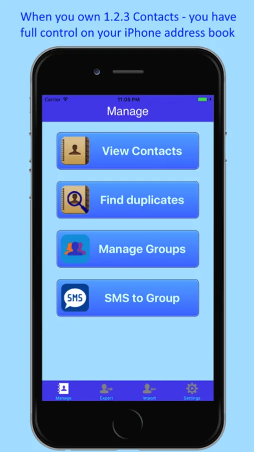 Simple and intuitive interface allows to perform a wide range of contacts management actions by number of touches on your screen. Backup and Restore, Export and Import your contacts in 2 - 3 touches on your screen.