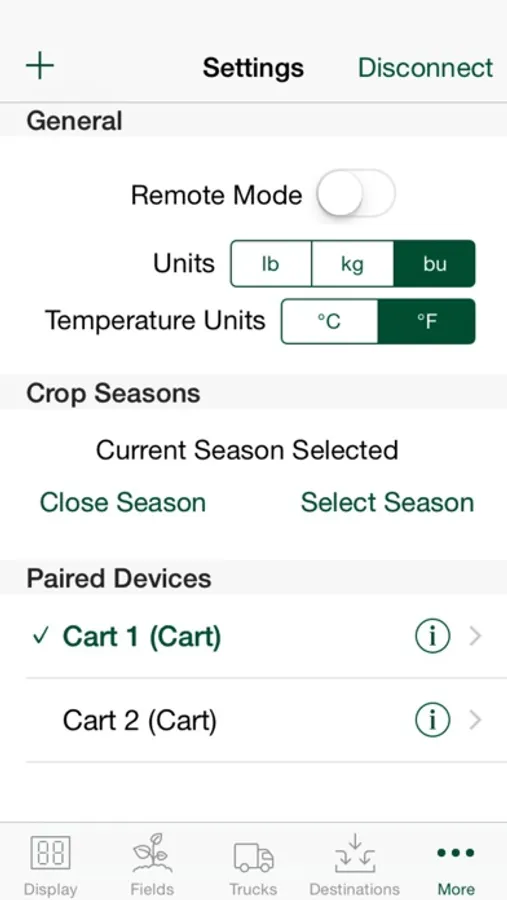 * Monitor cart weight remotely from tractors, combines or trucks within 400' of the cart using Remote Mode