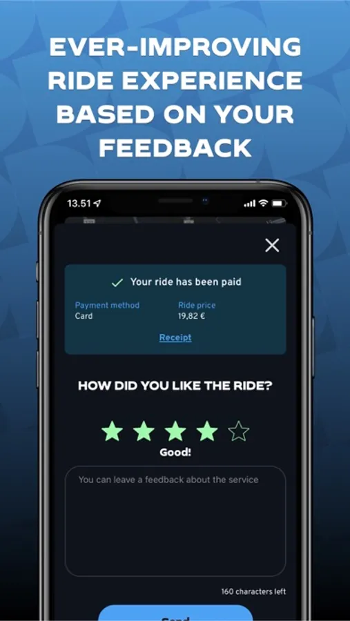 With the completely renewed Valopilkku app, ordering a taxi is quick and easy all over Finland. You can pay for your ride conveniently with a sensible fixed price in the app. You can choose a car based on your needs and then enjoy a reliable and high-quality ride. We highly appreciate your feedback from the ride that we could improve the ride experience.