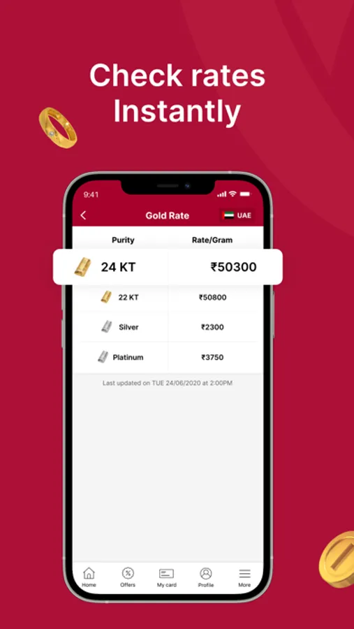 Enhance your jewellery shopping experience with our enhanced Utility App. This app offers you the convenience of several advanced features, including daily gold rates, making seamless and easy gold payments, ensuring gold rate protection, exploring gifting options, using the price checker, enjoying JGR rewards, and much more – all from the comfort of your phone.