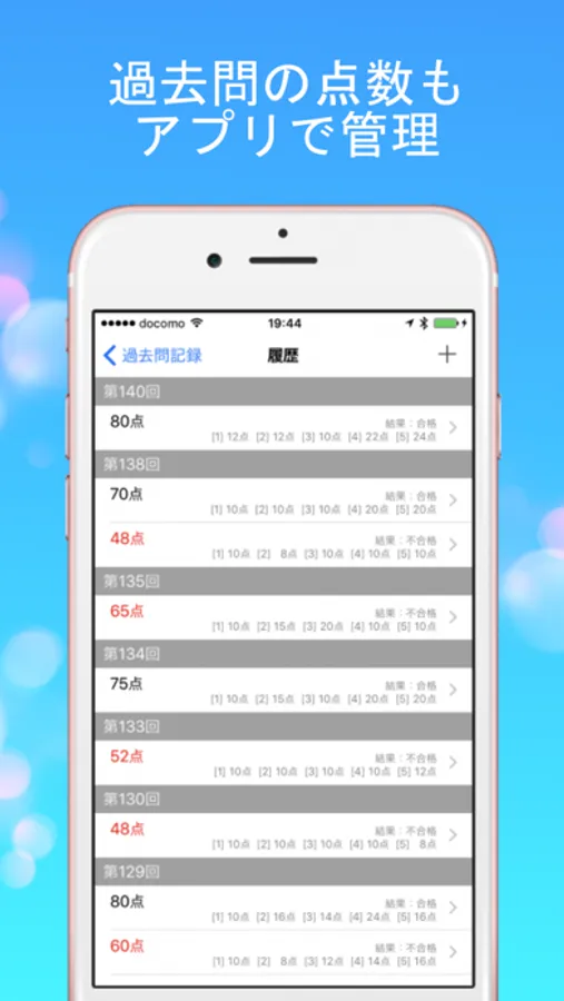 簿記の過去問の点数を細かく記録できるので、