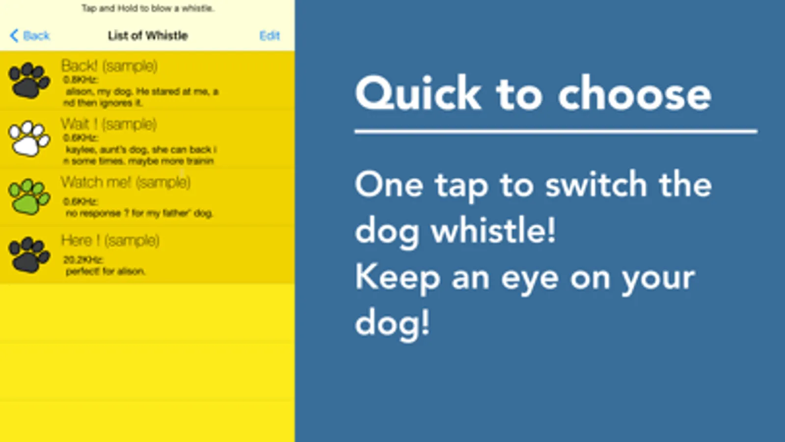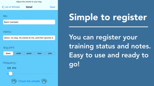 This app is easy to understand the multiple of dog whistle, a number can also be registered.