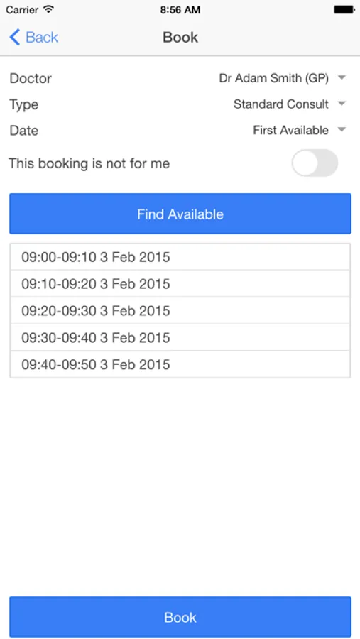 Note: The doctor's practice must be registered with dAppto for you to be able to make the appointment