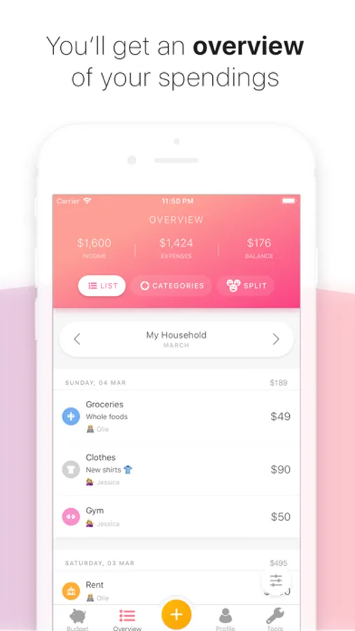 Do you want a shared budget with your partner? Or keep the expenses between you and your mates fair on the vacation? No problem, just invite them and get a clear picture of who spent what.