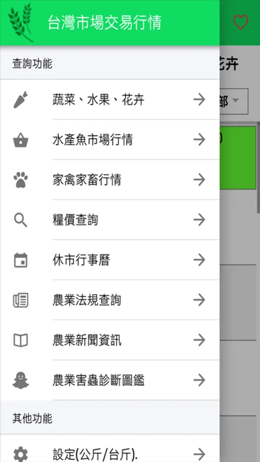 提供台灣農產品交易行情,包含了蔬菜、水果、花卉等三種行情
