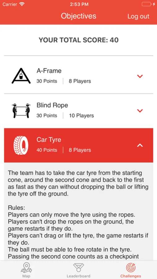 This game by Red Rock International is designed to monitor you're teams performance in an outdoor training event made to improve team work and communication. Every team tries to win mini challenges in order to control more of the map.