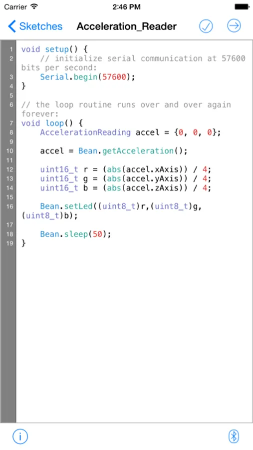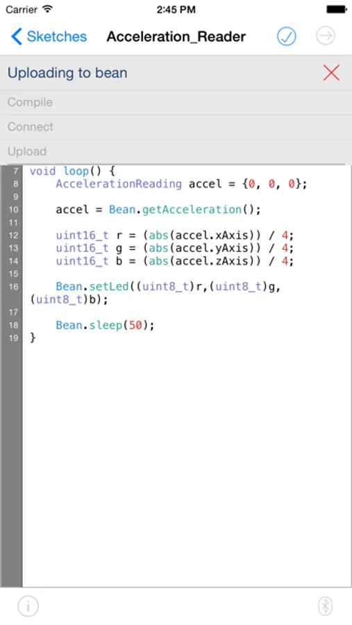 • Verify Arduino code on your iOS device with the Bean Cloud Compiler