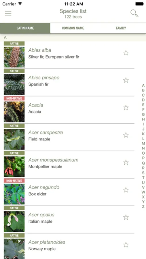 - 143 species described on 122 information sheets: all the native trees as well as those that most frequently become established in the wild in Andorra, continental Portugal, peninsular Spain, and the Balearic Islands. Each species entry includes a distribution map, a brief description and one or more photos.