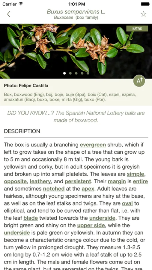 Arbolapp does not need an internet connection to work, making it really useful for trips into the natural environment. Its contents are aimed at anyone wanting to learn about or increase their knowledge of the trees they find in their surroundings. For this reason, an effort has been made to use understandable language and simple explanations without dumbing down the content.