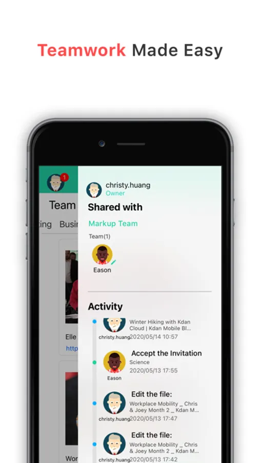 • Invite and manage your members in Team Panel which also tracks team’s activity