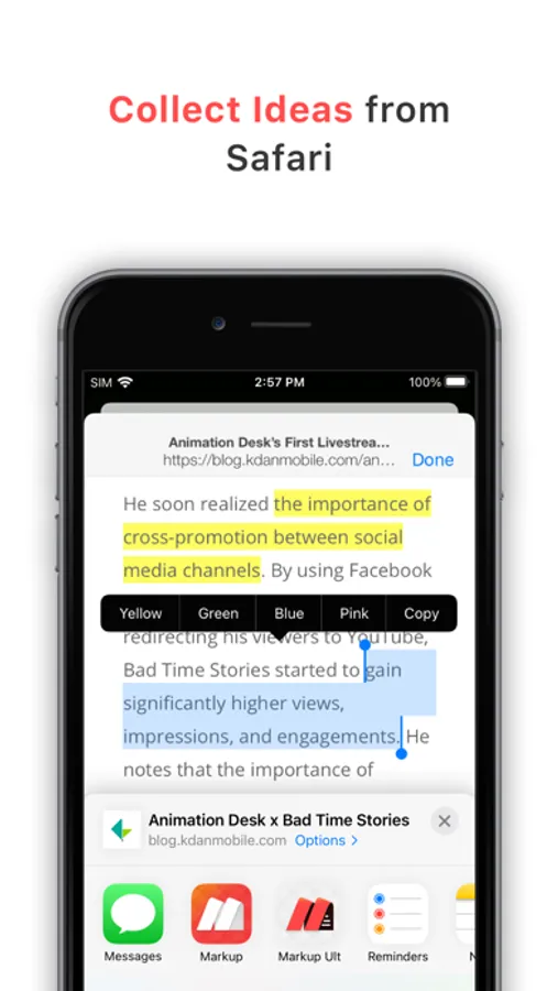 • Highlight text and excerpts on web pages through built-in or Safari browser.