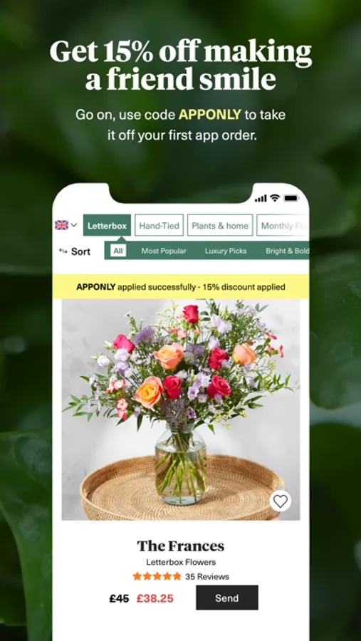 When you first use our app to send a gift, you’ll get 15% off with code ‘APPONLY’.