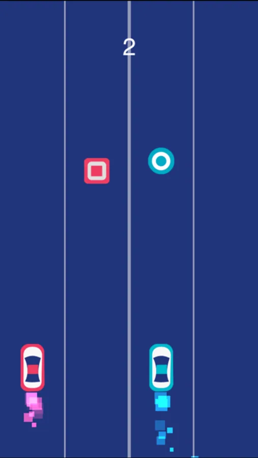 Control both the cars at the same time while collecting the circles on the road. Avoid the squares at all cost.