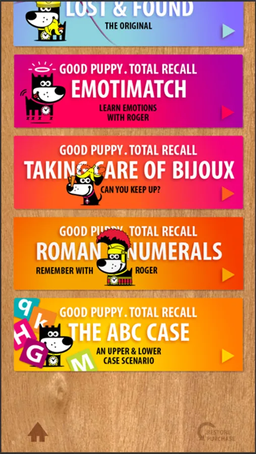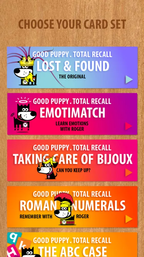 This GOOD PUPPY memory game comes with three difficulty levels, no ads and a free card set yours to keep. Play Lost & Found and get to know Roger, your guide, cheerleader and official super sidekick. This very agreeable puppy is here to help you exercise your memory and make the right connections.