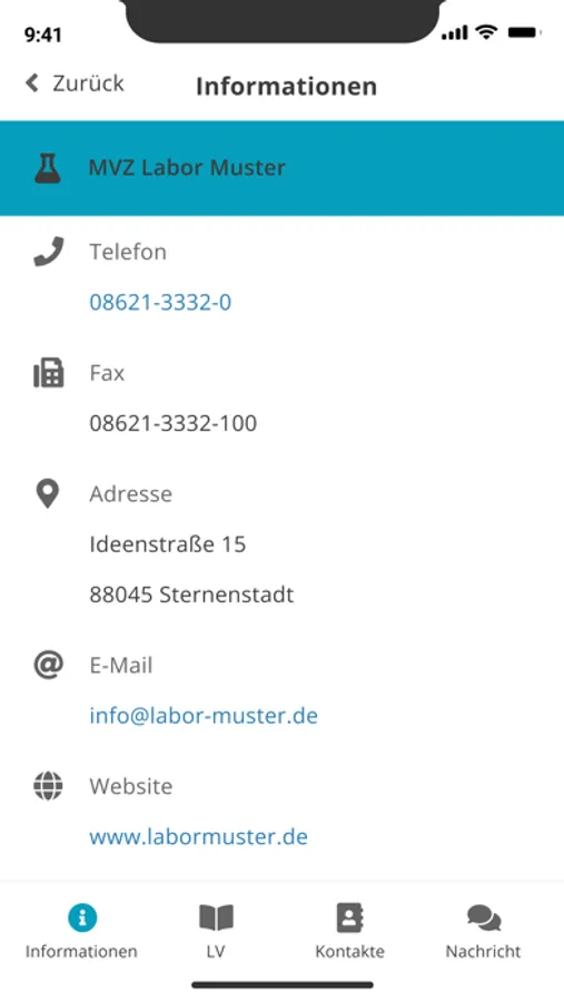 Über die integrierte Kontaktfunktion können Sie unkompliziert und schnell mit dem Labor des Institut für Laboratoriumsmedizin in Brandenburg kommunizieren. Überzeugen Sie sich selbst!